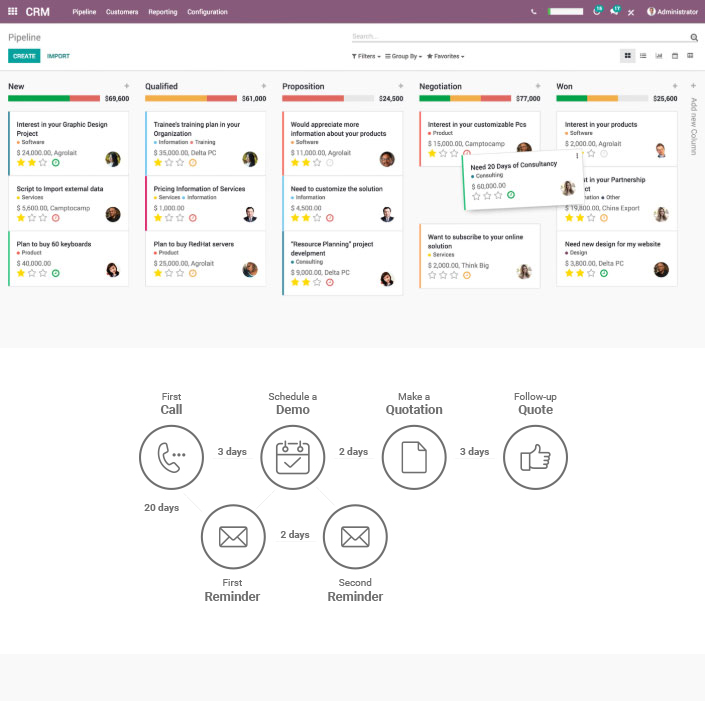 You can get more out of Odoo by integrating the CRM module with other business applications within and outside the platform.